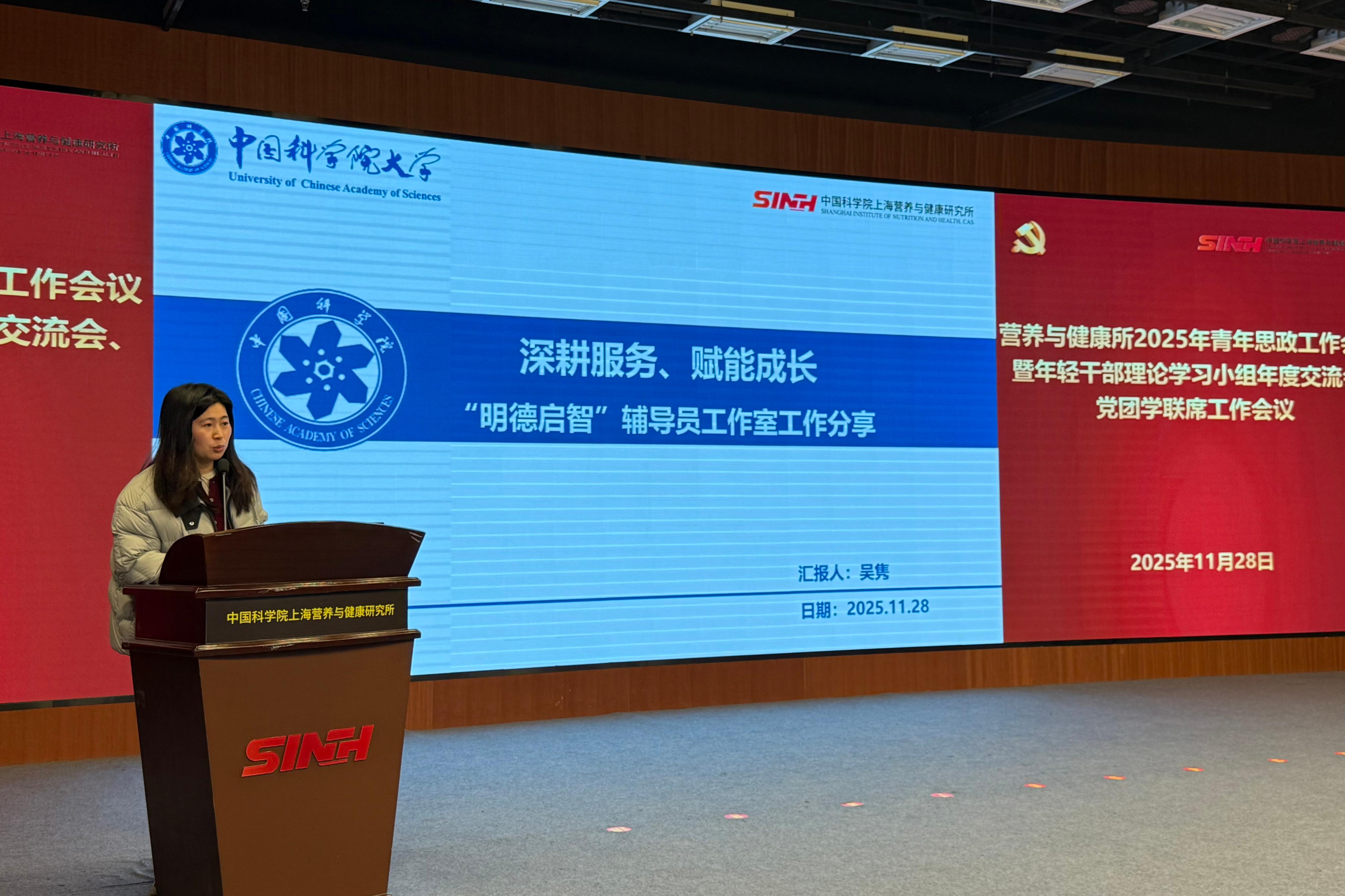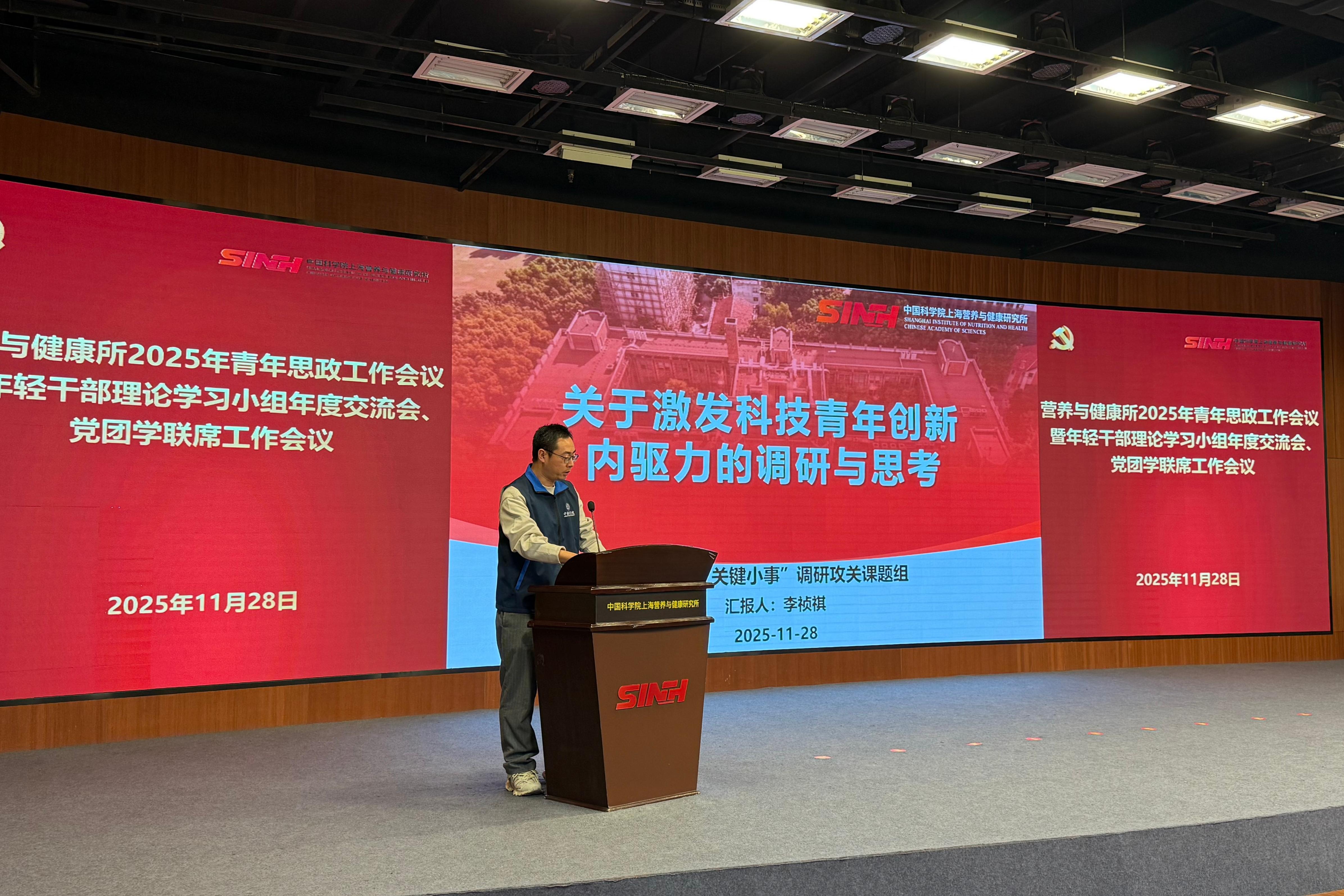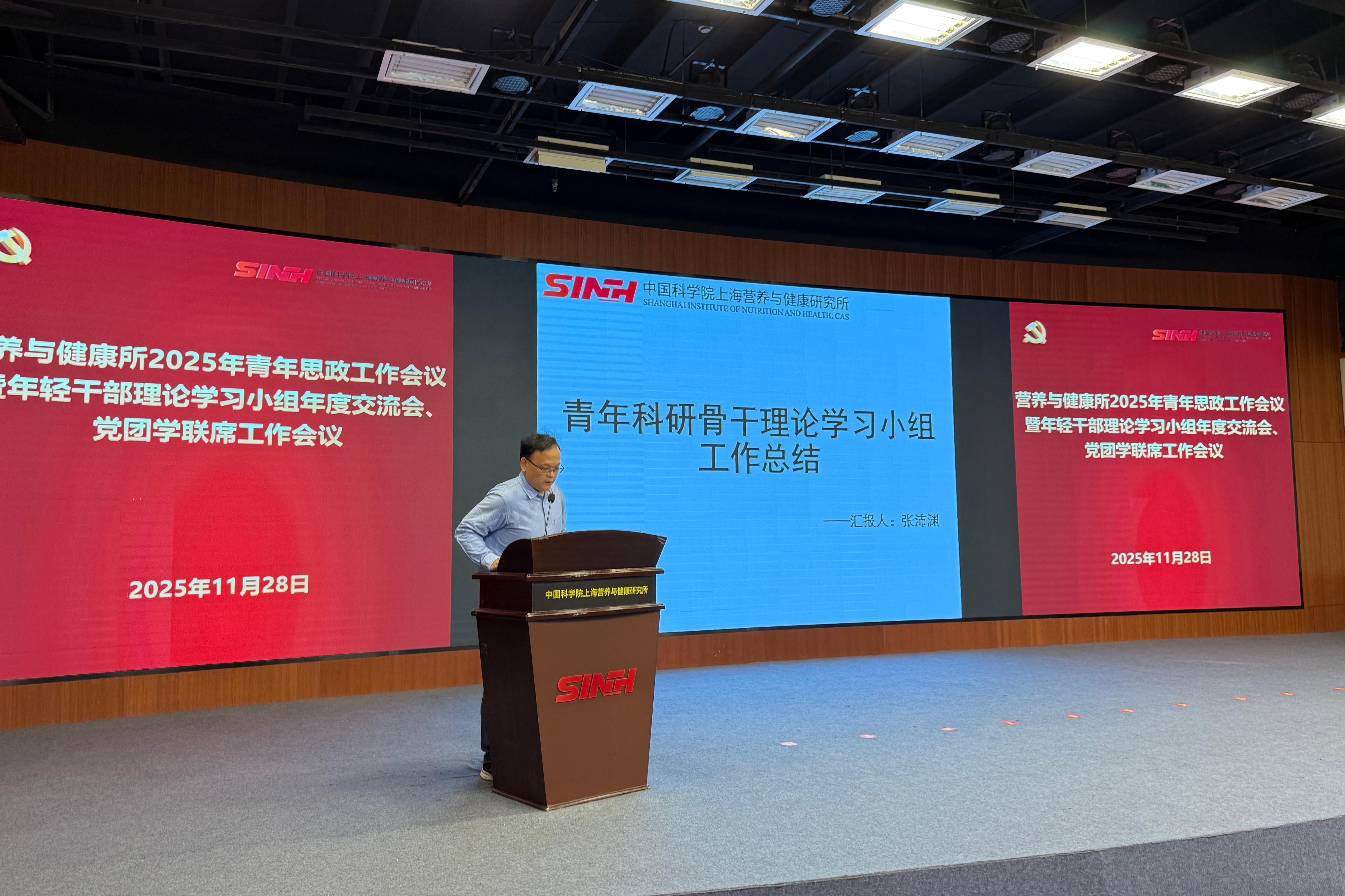 11月28日下午,為進(jìn)一步推動青年干部和科研人員在研究所高質(zhì)量發(fā)展新征程中展現(xiàn)新?lián)?dāng)、實(shí)現(xiàn)新作為,中國科學(xué)院上海營養(yǎng)與健康研究所召開2025年青年思政工作會議暨黨團(tuán)學(xué)聯(lián)席工作會議。營養(yǎng)與健康所黨委書記瞿榮輝、紀(jì)委書記曹永、相關(guān)職能部門和黨組織負(fù)責(zé)人、輔導(dǎo)員代表、各支部青年委員、青年理論學(xué)習(xí)小組組長及研究生代表近50人參會。