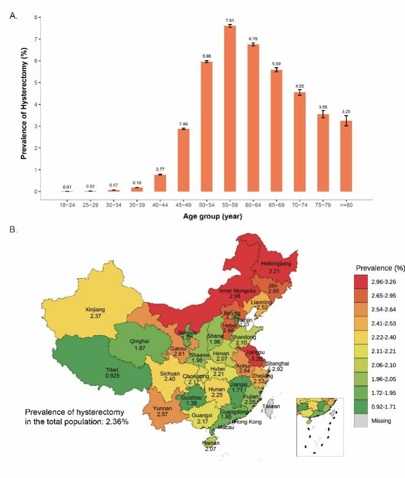 A.?按年齡劃分的子宮切除術(shù)粗患病率;